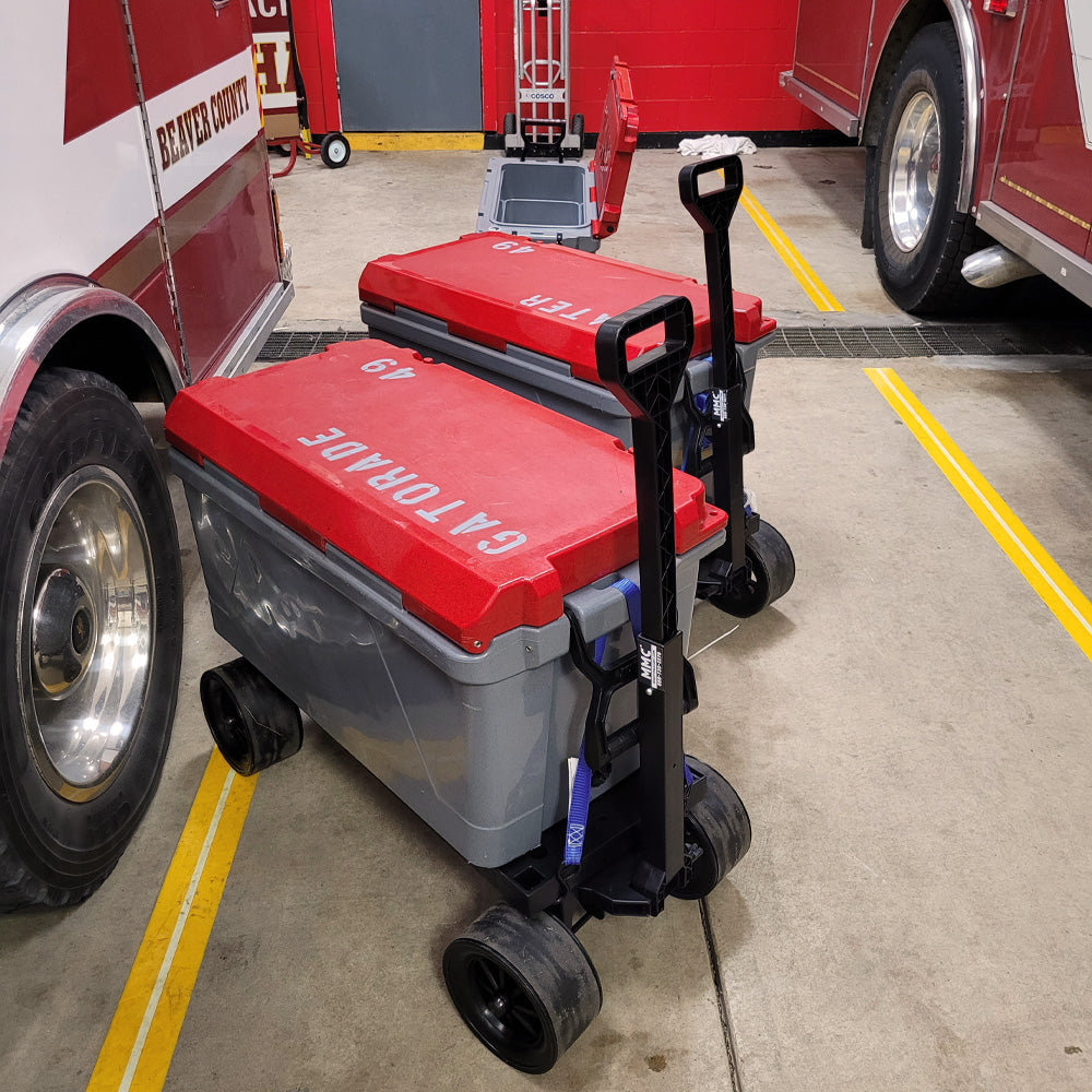 Assistant Chief Bill Giska and his team searched the web for a easier way to carry their coolers. “We discovered your carts by accident searching online for a more better and efficient way of transporting our coolers to Emergency Scenes, which at times can be a bit of a haul from our unit,” Giska explained.