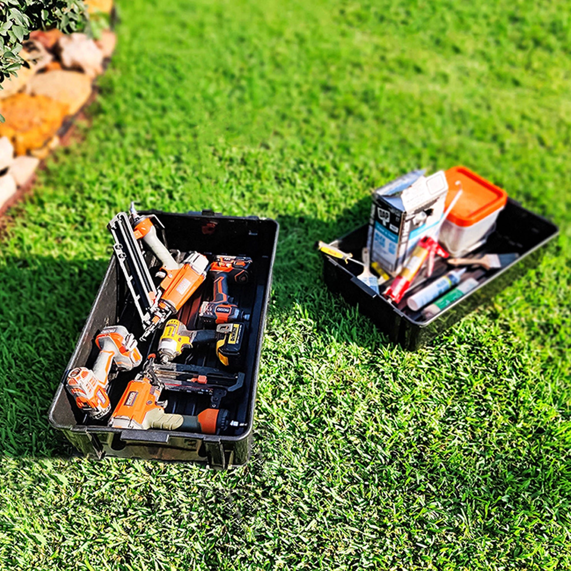 Off the frame, they can be stacked up to 4 tubs high for convenient storage of tools and other items inside a garage, closets, sheds, or basements.